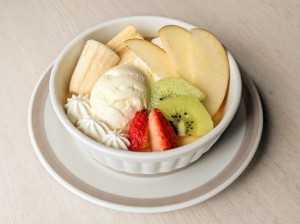 フルーツ(時期で変更有)とアイスクリーム、ホイップクリームを盛りつけました。