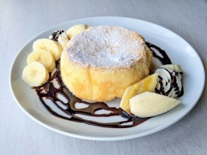 濃厚でしっかり食感のプリンにフルーツ(時期で変更有)とアイスクリーム、ホイップクリームを盛りつけました。