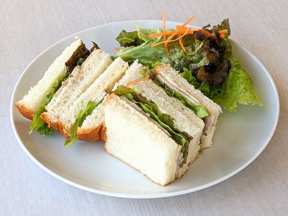 チャーシューのサンドイッチとサラダのセットです。 ※ドリンクはセット価格(+100円~)でお付けできます。